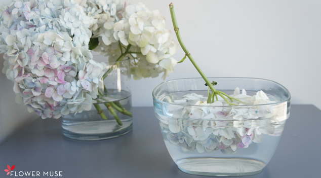 You can revive a droopy Hydrangea!  Sometimes all the tricks don’t seem to work and a flower will wilt anyway.  It is worth trying to revive your Hydrangea….you have nothing to lose!  Just cut the stem again and fully immerse the flower head and stem in cold water for a few hours.  In many cases, the flower will perk right up!