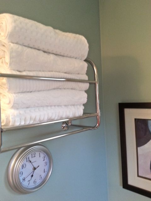 This nice big stack of fluffy white towels on the rack in the master bathroom certainly says “Summer”!