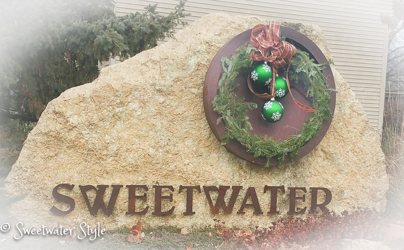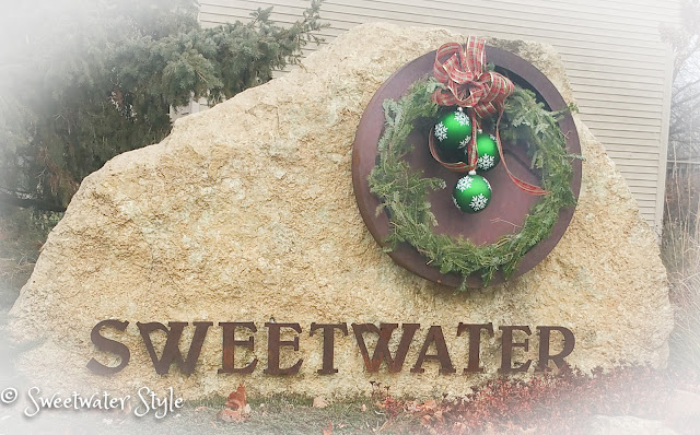 Before I go…..The Sweetwater entry is decked out for the holidays too!  I had an old grapevine wreath that was the perfect size.  A few scrap greens and some leftover ornaments from the Festival of trees event…..I am liking this a lot!