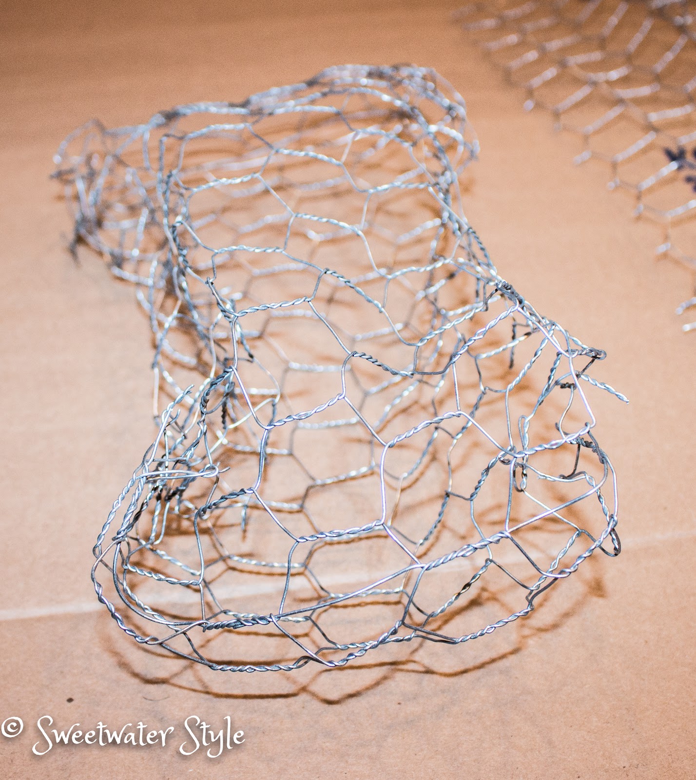 Form the eight inch strip into a cylinder by folding it over and pinching the sides in.  It is helpful to use work gloves when you do this…chicken wire is really hard on your hands.