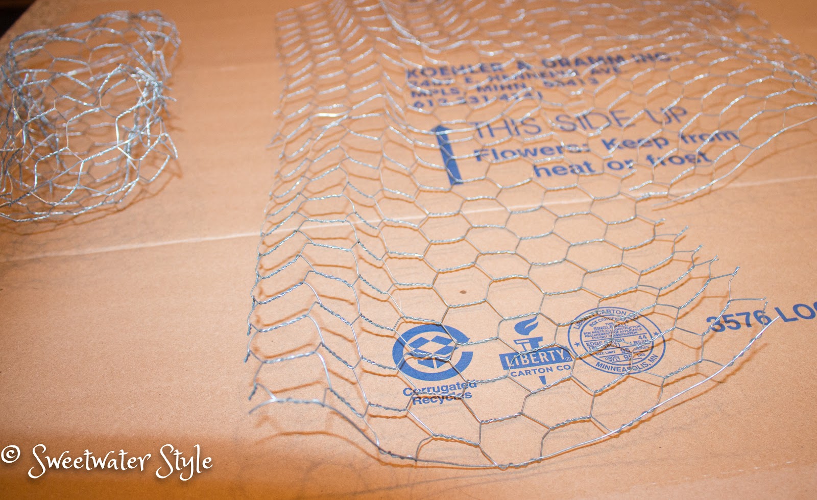 An eight inch strip of chicken wire can be cut using a sturdy snipper.  I am so lucky that Mr. S gifts me with these romantic type presents!  I guess he knows what I will actually use!