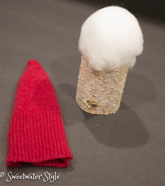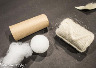 - Wrap fiberfill around the styrofoam ball and glue to the top of the tube or log piece.