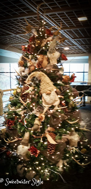 The plaid ribbon is woven deeply into the branches…it came from Tuesday Morning.