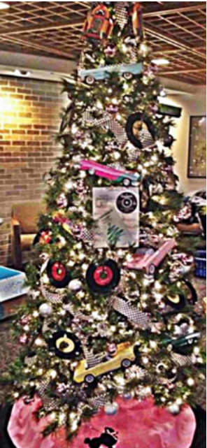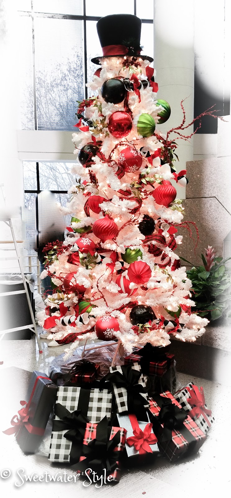 Faux packages wrapped in our color wave took the place of a traditional tree skirt.