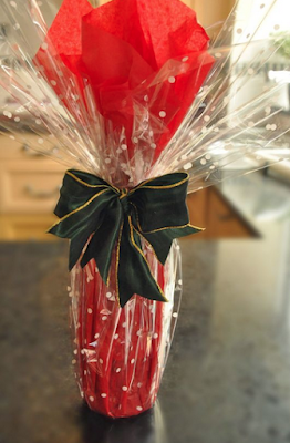 I love to use this simple clear cello wrap to dress up a hostess gift. If you buy food grade…it can make that home baked treat look pretty upscale. If you have some on hand you can add some instant glamour without much expense or fuss.
