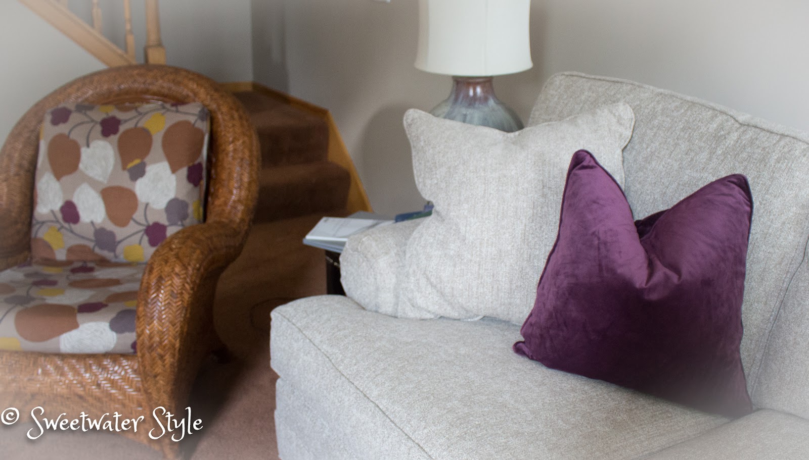 - A wine crate filled with interesting orbs and cotton bolls is fall like without going all “pumpkin” flavored! I often find these decorative balls at Good Will for a fraction of the cost they are at a decor store. The same goes for the wine crate…keep an eye out for interesting containers.