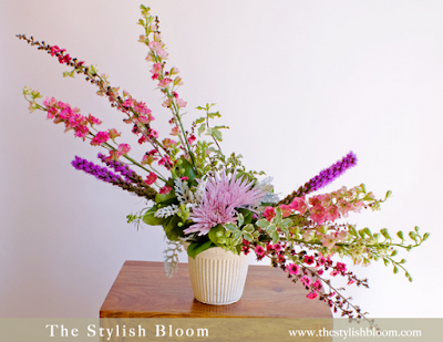 I hope you look at these beautiful examples of asymmetrical designs and the find inspiration to try something a little "messy" the next time you have flowers to arrange.