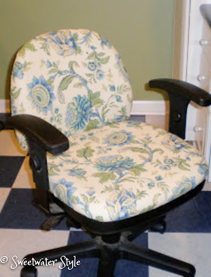 I learned to “upscale” an office chair a couple of years ago to make an eyesore part of the decor.