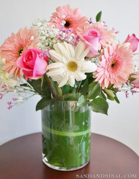And don’t forget that Hosta leaves are a great way to line a glass vase to hide the floral foam.