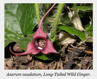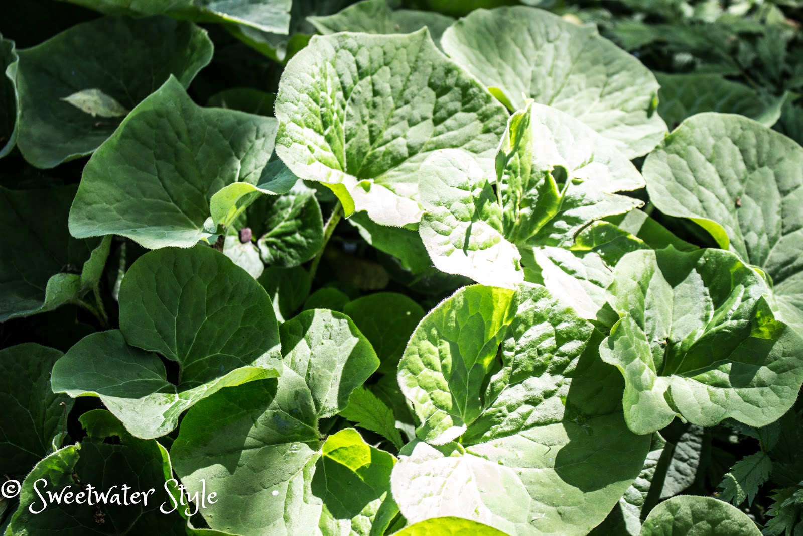 Ginger (Asarum)—I love the mounds of Wild Ginger that have cropped up throughout the shadiest parts of the garden. This is strictly a foliage plant…..it has these cool looking “flowers” at the base of the plants….except you can hardly see them. The leaves of this plant stand up well in cut flower arrangements.