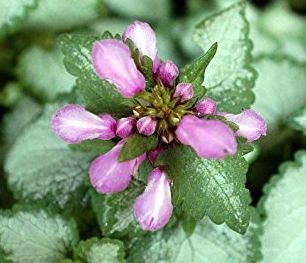 - Lamium (Lamium maculatum)—I have these pretties sprouting up everywhere in the shady woodsy areas of the garden. I somehow got 3 or 4 different varieties. The flowers are early bright spots in the garden. This is a great plant to pull up and plant in pots for early color before you can plant annuals. I let it bloom then pull it out like weeds over the summer. It always makes a reappearance.