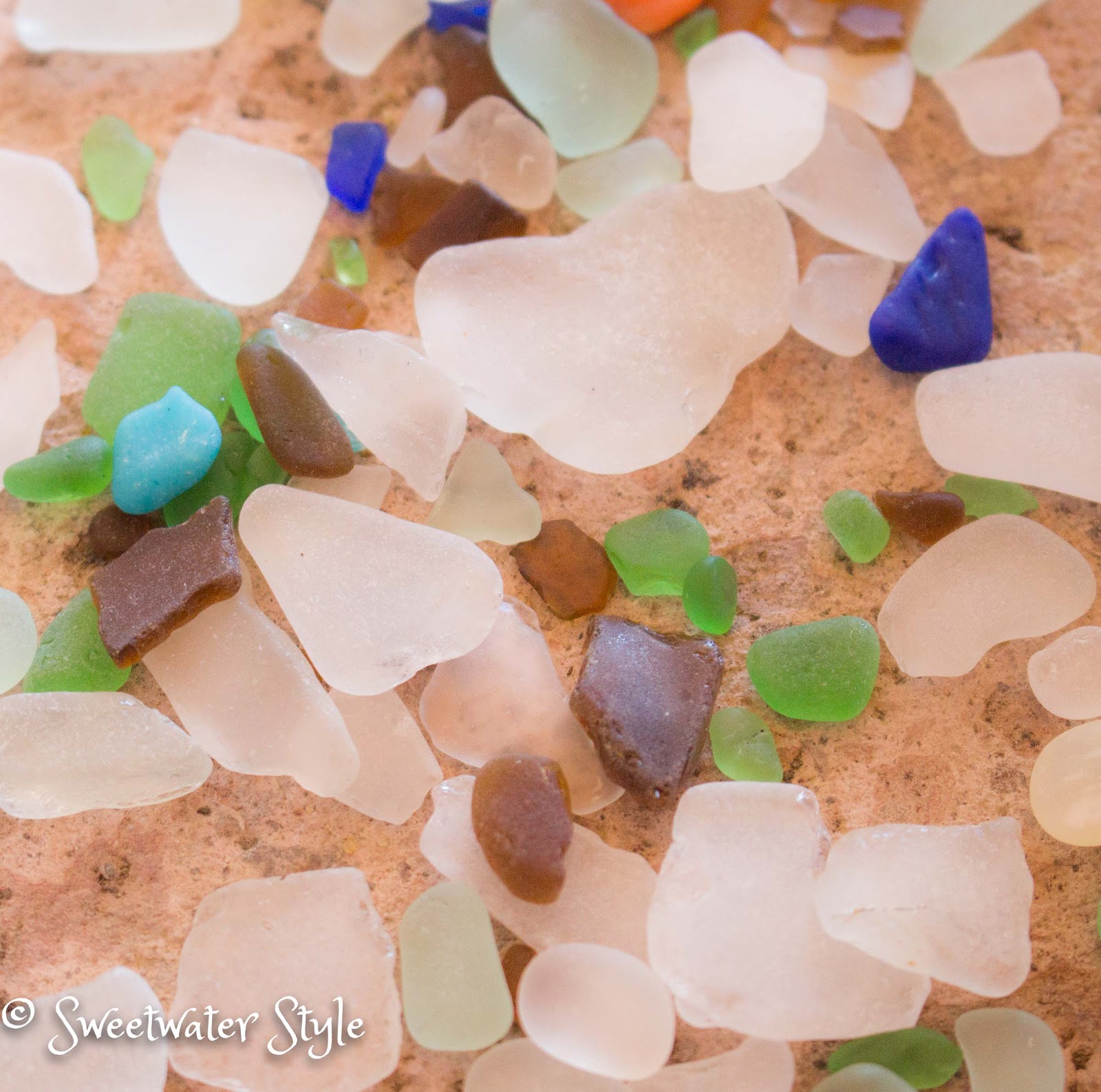 I am enchanted by sea glass….when I was strolling the beach, I kept my head down and found all of these treasures. I am trying to think of a craft to use them on. Any ideas out there?