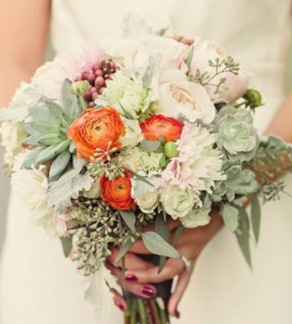 I looked for some examples of ranunculus used in wedding bouquets.