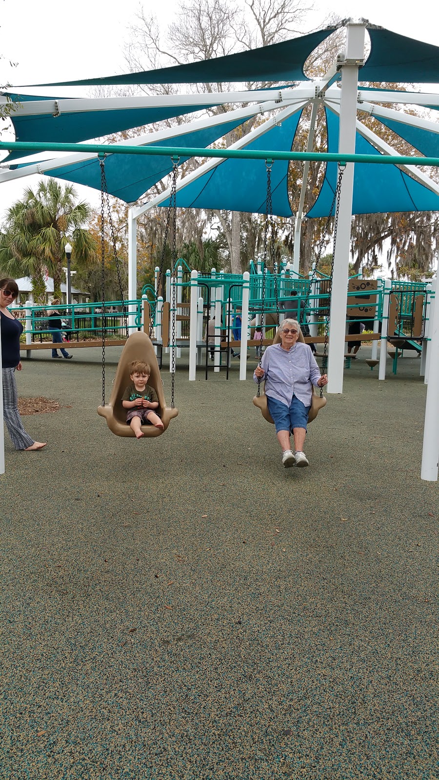 Our trip was fun…..The Grandboy loved going barefoot and hanging out with “swingin'” GreatGrandma…