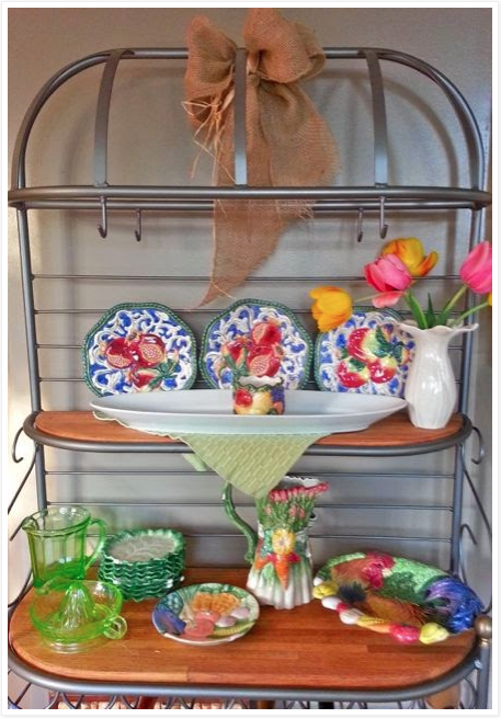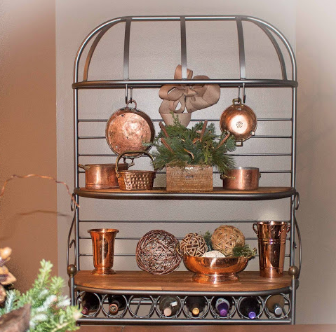 The copper pot/vase was another great find. I am thrilled to have it to add to the baker’s rack display.