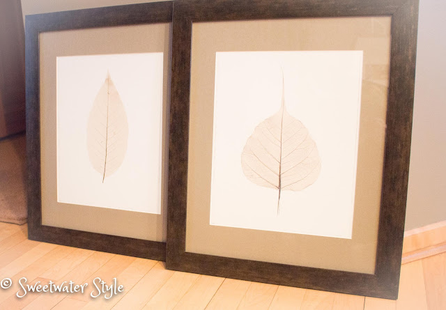 I am really thrilled with these two skeleton leaf prints. They are in perfect condition. They are framed in the perfect frames with a taupe mat that matches our new family room paint color.