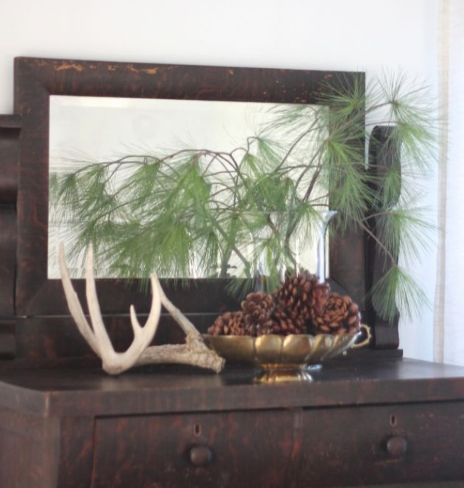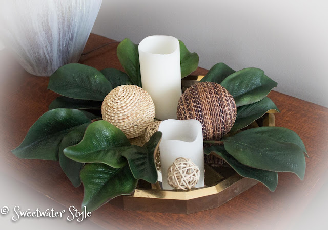 More of the magnolia leaves and some decorative natural looking balls were “rescued” from the mantel.
