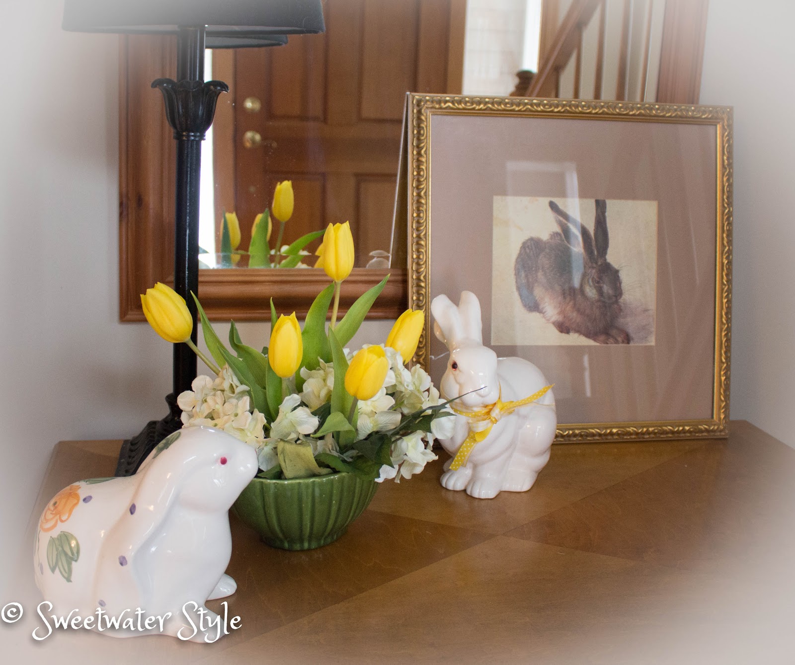 I want to show you how I have been using tulips to bring Spring into the decor around here.