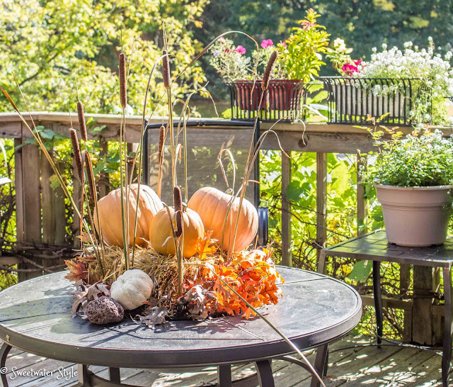 It can be a challenge to get a natural looking arrangement when you use artificial pumpkins.