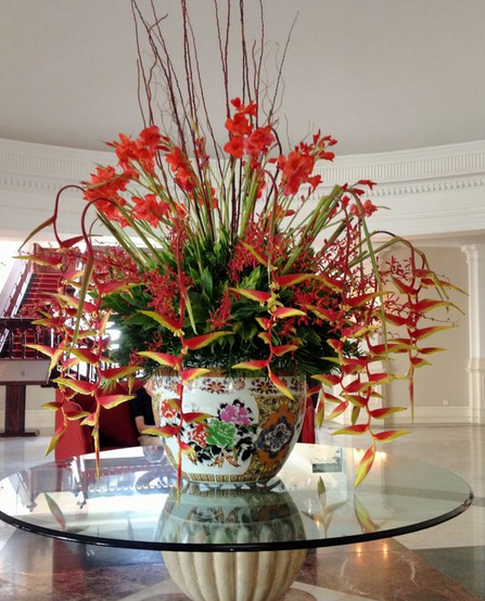 One of those things I remember was the suggestion to copy the look of hotel lobby floral arrangements. These displays tend to be done on a grand scale.