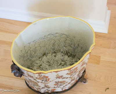 A chunk of chicken wire went into the bottom to support all of the sticks.