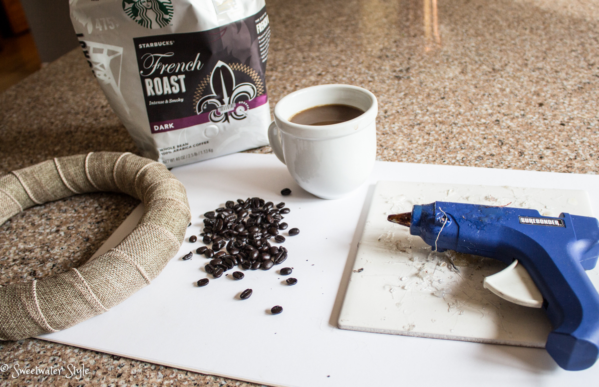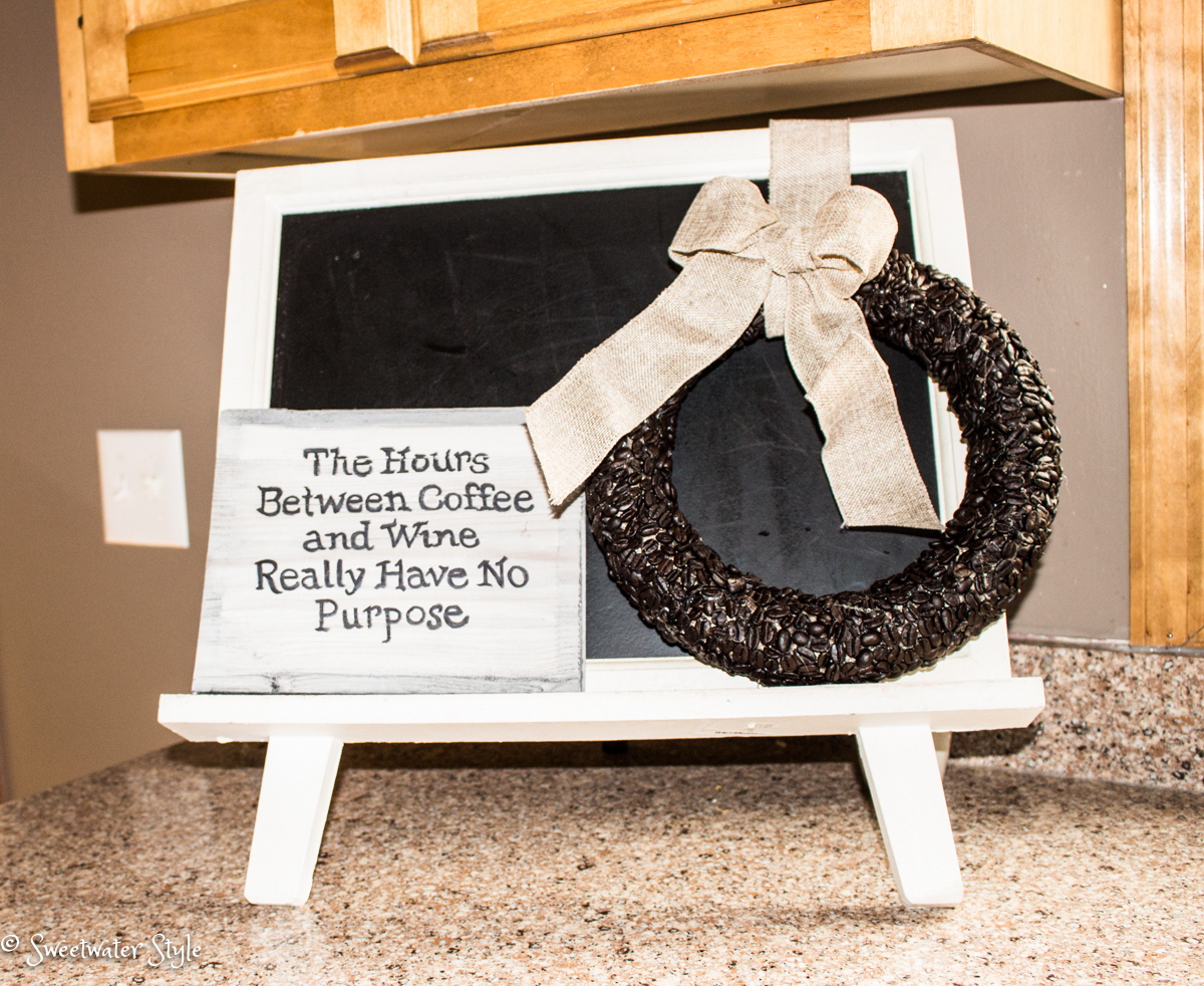 With a burlap bow and a favorite coffee quote, this little craft turned out well.